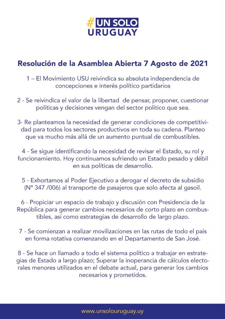 Allí se tomó la decisión de realizar movilizaciones para manifestar contra la suba del valor de los combustibles.