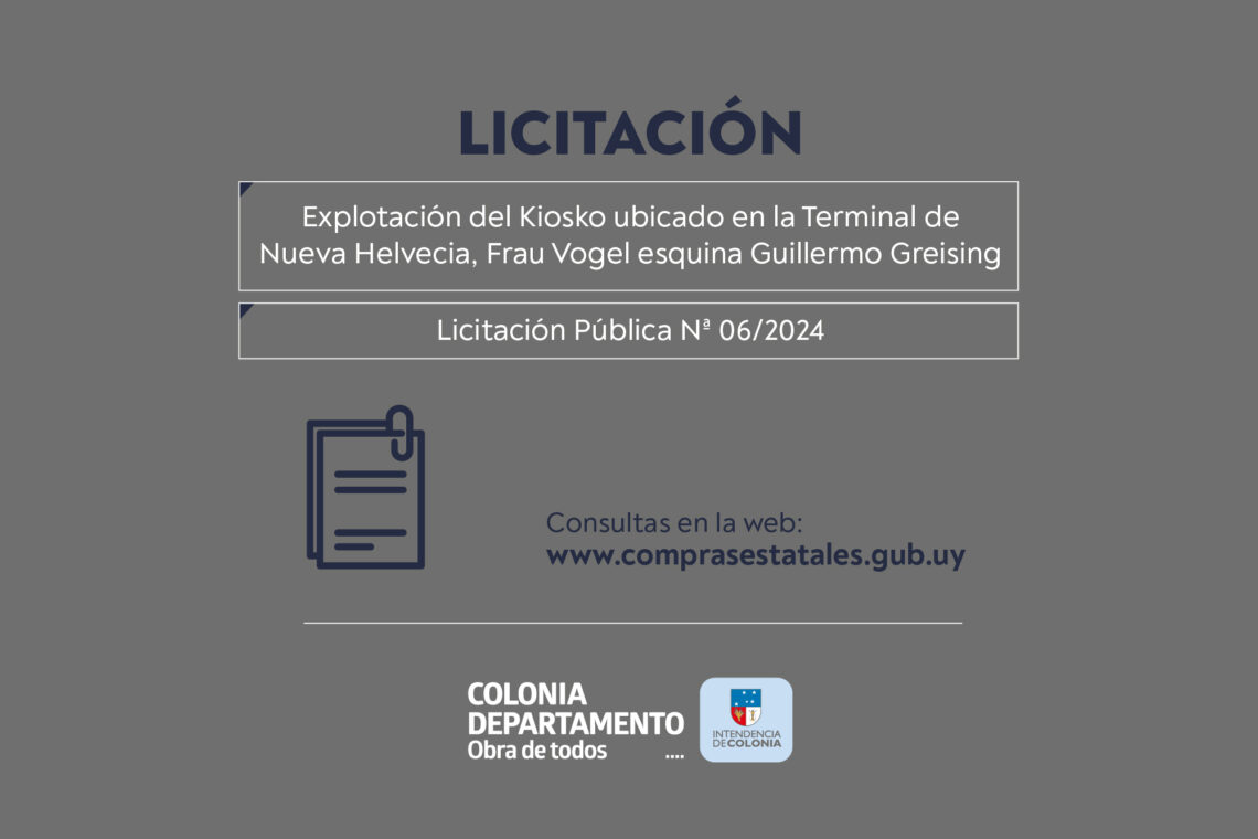 La Intendencia de Colonia a través de la Licitación Pública N°06/2024, llama a interesados en la “Explotación del Kiosko ubicado en la Terminal de Nueva Helvecia, Frau Vogel esquina Guillermo Greising”.