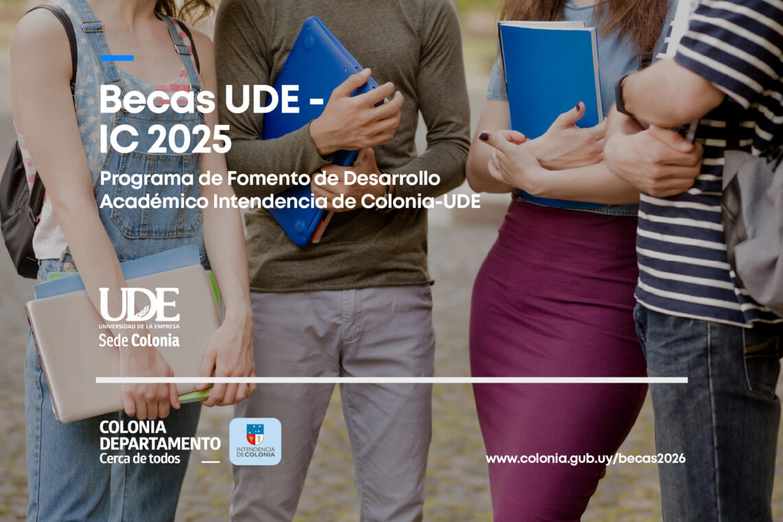 La Intendencia de Colonia y la Universidad de la Empresa (UDE) en el marco del Programa de Fomento del Desarrollo Académico, informan que se abrió el llamado a inscripción para las Becas 2026.