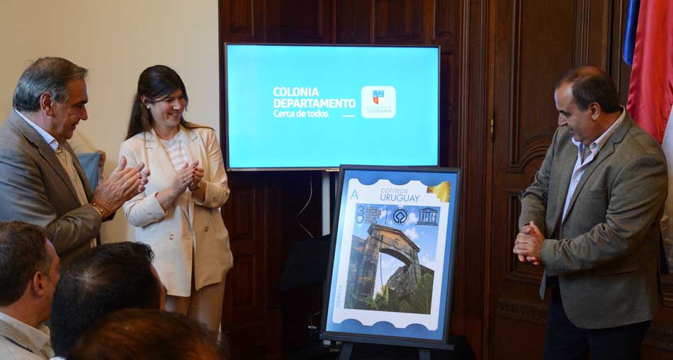A su tiempo el Intendente Rodríguez indicó que para Colonia todo, es un orgullo y un honor tener la distinción de este sello, a la vez que recordó que esta declaratoria significó para Colonia un antes y un después en su historia. Rodríguez remarcó que basta repasar los demás sitios Patrimonio mundial que existen para tomar dimensión de la envergadura que representa integrar dicha lista. Aprovechó la oportunidad para recordar y homenajear a todos los que hicieron posible este logro y la presencia del jerarca del Correo para esbozar la idea de concretar un nuevo centro de cercanía en nuestro departamento, que se sumará a los ya existentes, en esta ocasión para la localidad de Conchillas, reafirmando el concepto de seguir estando cada vez más cerca de la gente de todo el departamento.