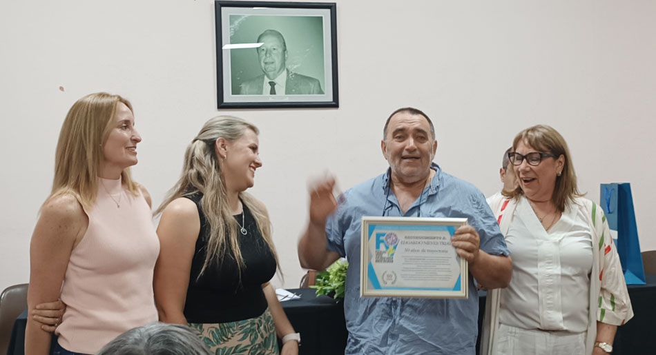 El tercer reconocimiento fue para CADIS, al cumplir 30 años de trabajo ininterrumpido, poniendo en valor su compromiso con la inclusión, la educación y la dignidad de las personas con discapacidad, así como la resiliencia institucional frente a las dificultades. El cierre fue con el homenaje al músico Edgardo Nieves, por 50 años de trayectoria artística. Referente cultural, compositor y multiinstrumentista, agradeció con humildad y emoción: “sin ustedes no soy nada”, dedicando el reconocimiento al público que lo acompañó durante décadas.