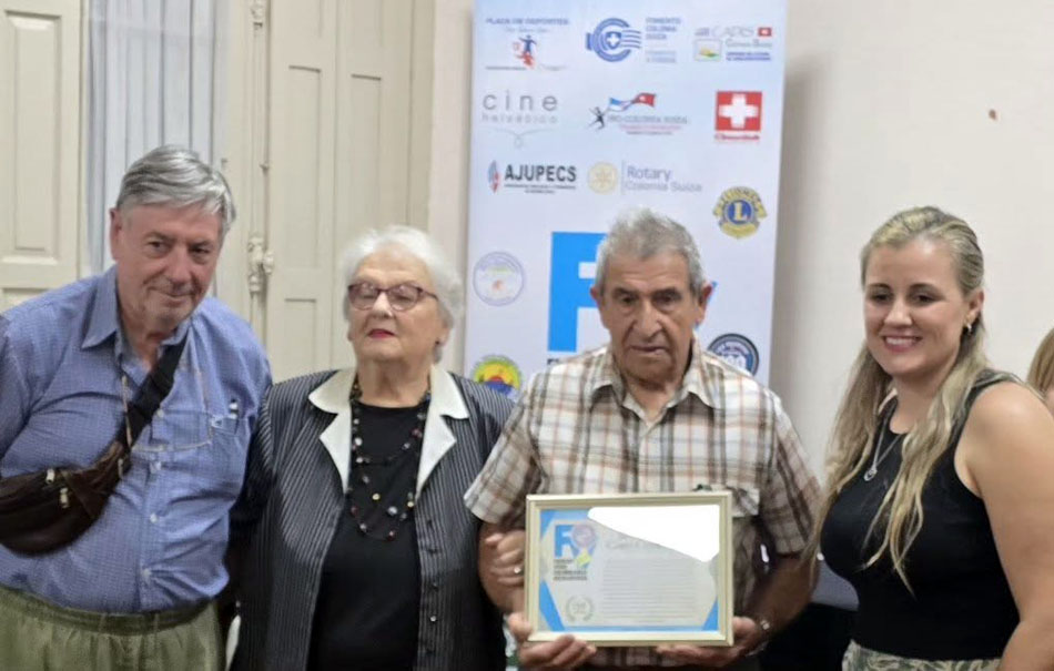La jornada también dio paso a los homenajes. El primero fue para el Coro Concordia, que celebró 110 años de trayectoria, recordando el canto como hilo cultural y espiritual de los primeros colonos. Recibió el reconocimiento Juan Honegger, presidente de la comisión. Luego fue homenajeada la Sociedad de Fomento Rural de Colonia Suiza, también por sus 110 años, destacando su papel histórico en el desarrollo productivo y social de la colonia, con palabras que recibió su presidente Diego Hernández.