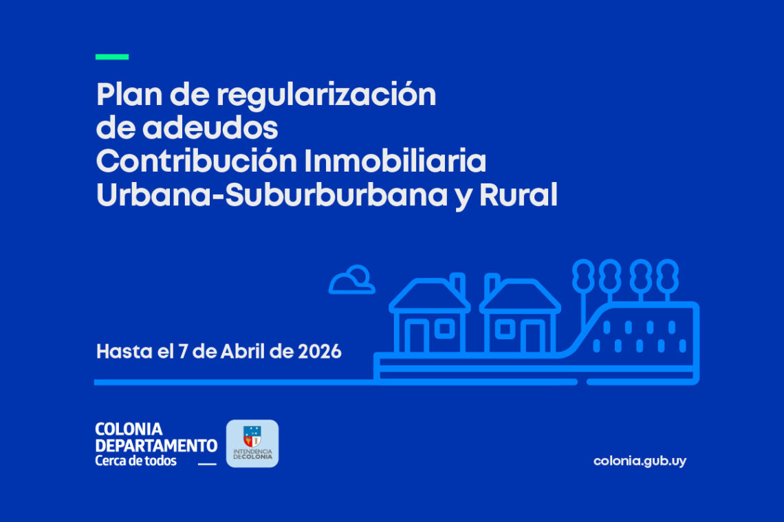 La Intendencia de Colonia, a través del Departamento de Hacienda y Administración comunica que se llevará a cabo un Plan de Regularización de Adeudos para Contribución Inmobiliaria Urbana-Sub Urbana y Rural.