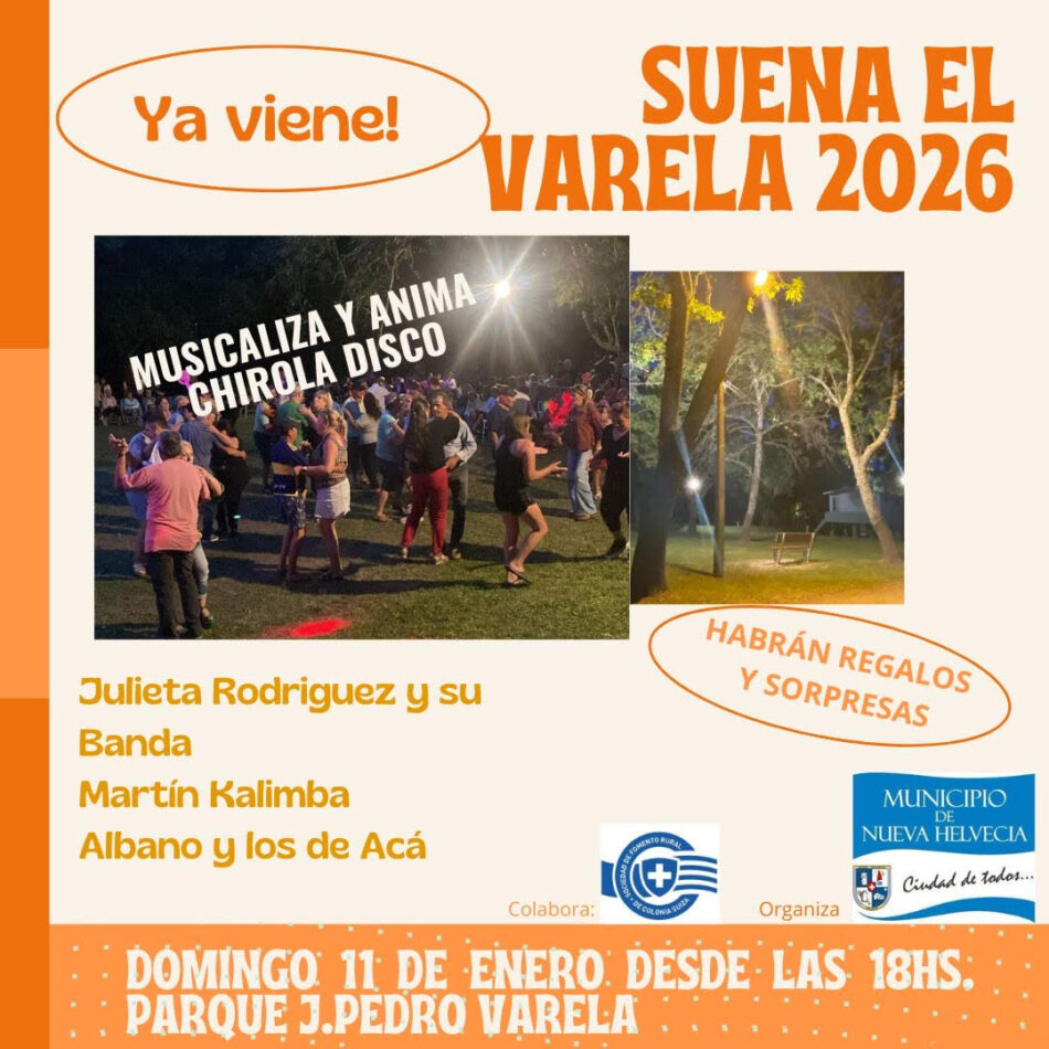 “Suena el Varela 2026” es organizado por el Municipio de Nueva Helvecia, con la colaboración de la Sociedad Fomento Rural de Colonia Suiza.