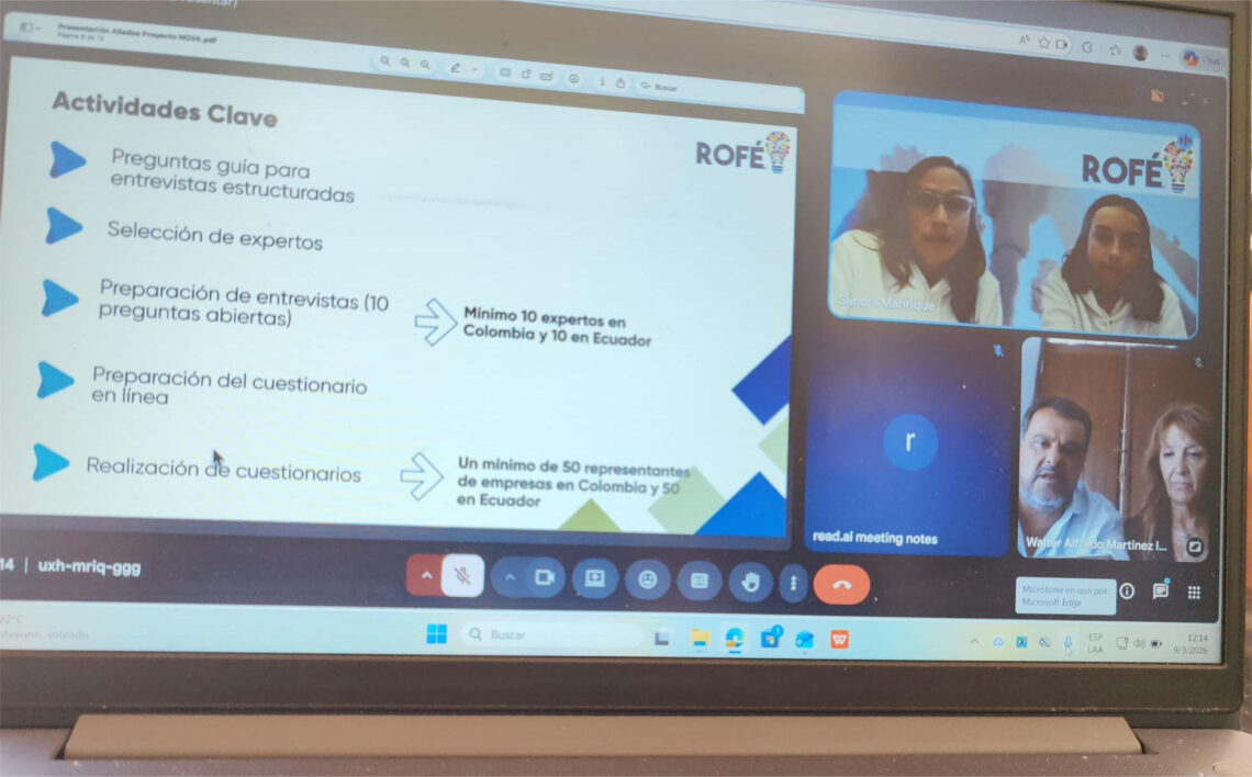 La Directora de Género Esc. María Isabel Roselli, con la asistencia del Director de Cooperación Internacional Lic. Alfredo Martínez mantuvieron un importante encuentro virtual con Coordinadora del Proyecto NOVA de la Fundación Rofe de Colombia. Proyecto con corte de género financiado por la Unión Europea (Erasmus) que tiene como Aliados a Organizaciones de Colombia, Ecuador, España, Italia. Donde invitan a participar con asistencia técnica, aportando experiencia, identificando y aportando expertos, formulando cuestionarios y participando en espacios de dialogo.