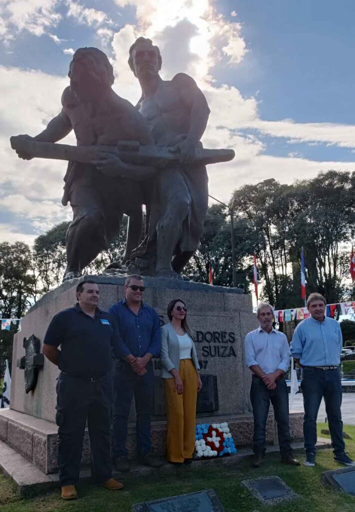 En el marco de los 164 años de la fundación de Nueva Helvecia – Colonia Suiza, autoridades, instituciones y vecinos participaron este sábado 25 del acto protocolar realizado en la Plaza de los Fundadores, donde se llevó a cabo la tradicional colocación de una ofrenda floral en homenaje a quienes dieron origen a la comunidad.